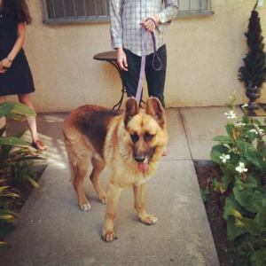 We found a dog in the park. Me and Nikol, and this other girl. Walking in the middle of Elysian Park on this long dirt road, we saw in the distance what looked like a gigantic coyote or a small bear stumbling drunkenly around, digging up shit, and eating sticks. Getting closer it was just a huge German shepherd. Little beat up but a handsome beast, and with a collar on, so we figured some jerkoff would come jogging up the road behind his Gestapo enforcement dog that he’d let roam free in a public space frequented by small children.