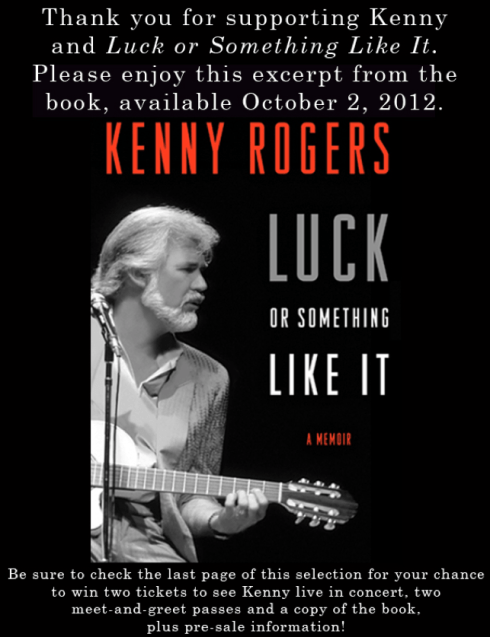 Kenny’s first-ever autobiography, Luck or Something Like It, releases on October 2, 2012! Kenny wants to thank you for your unending support “through the years” by offering an exclusive preview excerpt from the book to his fan community. This exclusive sneak peek is available only to those who are directly connected to Kenny through his social networks.